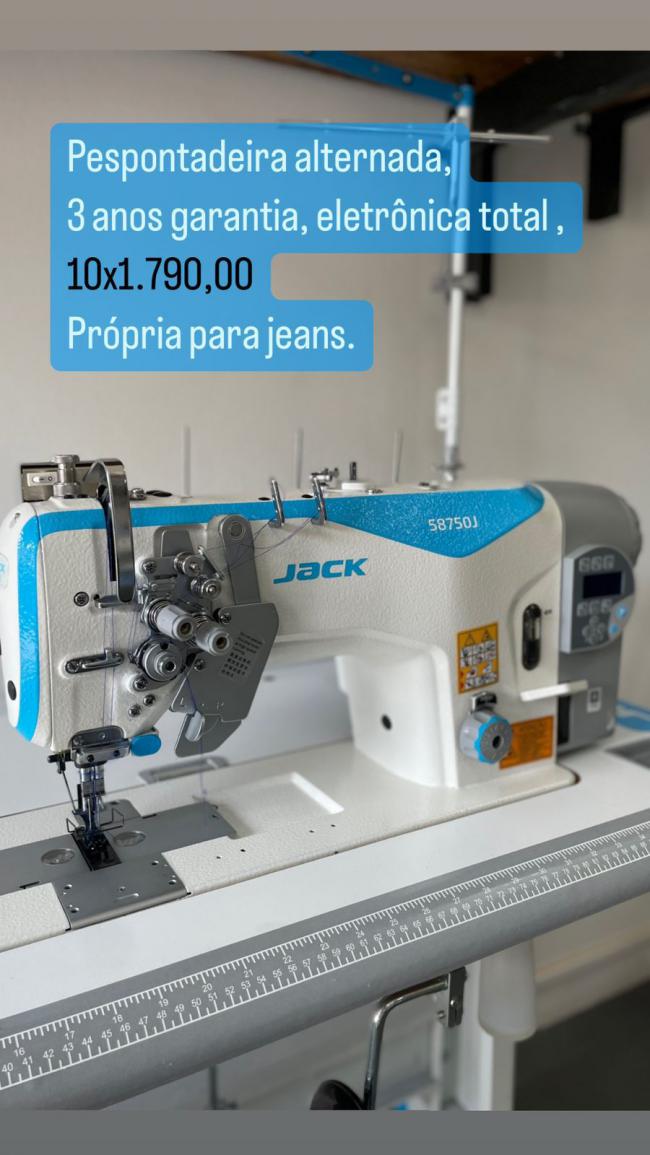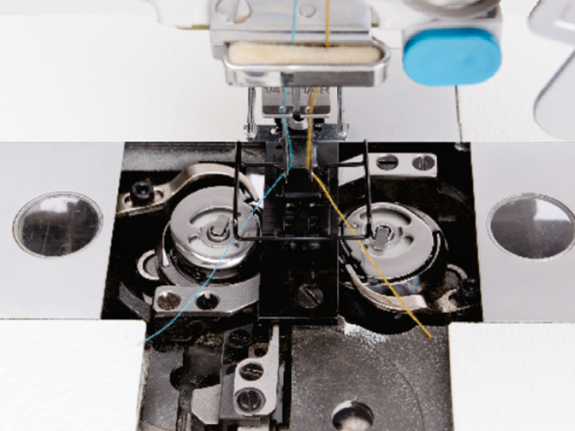 Ideal para a indústria de jeans, a JK-58750J, conta com desligamento de barra para auxiliar principalmente nas costuras de bolsos, ou até mesmo pespontar as frentes de bolsos. Conta também com 4 funções automáticas, permitindo agilidade ao processo.